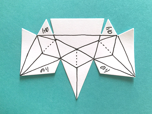 で、「のり」と書いてあるフラップをお隣のパーツにぴったりと合わせると、無理なく自然にダイアモンドの形になります。