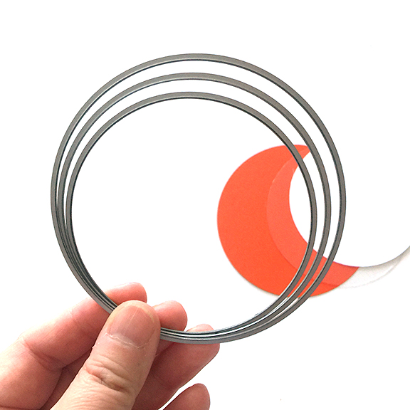 このサークルの中を埋めて、アセテートのシートで窓を作ってシークインを閉じ込めれば、あとはブラックのストライプとオレンジのカード台紙がまわりをハロウィンらしく飾ってくれます。というか、もうこの時点で十分ハロウィンカード!ですよね。